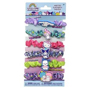 Pacote com 6 elásticos de cabelo Hello Kitty e Amigos, incluindo um de cada personagem: Cinnamoroll, My Melody, Hello Kitty, Kuromi, Pochacco e Little Twin Stars, da All Star Toys. [PRODUTO INTERNACIONAL / COMPRA INTERNACIONAL] Atenção! Este produto é de origem internacional e está sujeito aos procedimentos e regulamentações aplicáveis à importação de bens para uso pessoal no país de destino. O consumidor é responsável por garantir que o produto esteja em conformidade com quaisquer exigências locais, certificações ou autorizações necessárias para seu uso. Por favor, verifique as leis e diretrizes aplicáveis das autoridades reguladoras do seu país antes de concluir a compra.