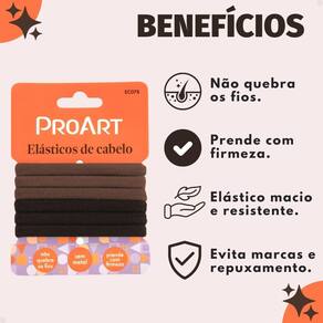 Elásticos De Cabelo Proart Pequeno Cor Marrom Ec07b Os Elásticos de Cabelo Proart Pequeno EC07B são ideais para prender pequenas mechas, tranças, penteados delicados ou infantis com praticidade e conforto. Fabricados com material elástico resistente e de alta qualidade, proporcionam firmeza sem puxar, marcar ou quebrar os fios. Compactos e versáteis, são perfeitos para o uso diário e para quem busca acessórios discretos, eficientes e duráveis.