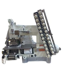 Máquina de costura industrial elastiqueira 12 agulhas cilíndrica para lastex. Sistema de looper de movimento elíptico. Motor Direct-Drive integrado com economia de energia de até 70%. Operação silenciosa. Ideal para tecidos leves e médios. Potência do motor: 550W. Tensão: 220V. Velocidade: 3.500 rpm. Número de fios: 24. Número de agulhas: 12. Distância entre agulhas: 1/4 polegadas (6.4mm). Comprimento do ponto: 1,4mm - 3,6mm. Levantamento do calcador manual. Lubrificação automática. Base: Cilíndrica. Funções automáticas: Parada de Agulha. Inclui mesa e estante com rodinhas.Funções