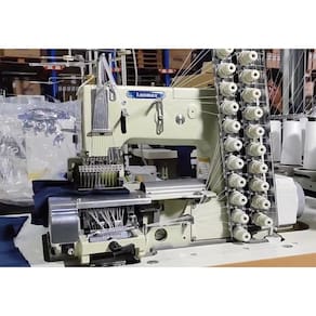 Elastiqueira 12 agulhas ponto corrente base plana, ideal para aplicação de lastex, podendo ser utilizada em vestidos, saias, blusas, etc.