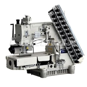 SSTC118-12064DH-PDSU - 12 agulhas, cilindrica, *eletrônica, pneumática com corte de linha e levantador de calcador automático, lubrificação automática, 4500ppm, altura do calcador 12mm, bitola 1/4 6.4mm, motor direct drive, cpu embaixo da mesa, – Montagem completa (Mesa em madeira / estante com altura regulável / rodizio – Máquina de costura completa com manual e seus acessório – Máquina em conformidade com a Nr12