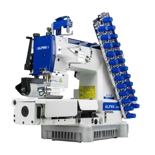 Máquina de 12 agulhas, 24 fios, motor Direct Drive 220V. Ideal para produzir bermudas, calça jeans, lençol com elástico, moda íntima, tecidos leves, médios e pesados. Lubrificação automática, luz de LED 3 estágios, bitola 6.4 mm, 2 catracas, potência do motor 550W, mesa e estante com rodinhas. Catraca Dentada em Três Pontos, Superior, Inferior e Traseira. Looper Independente com Ajuste Fácil da Agulha. Parada de Agulha configurável via painel. Sistema sem Volante Manual. Transporte Vertical.Funções