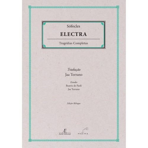 Em Áulida, junto ao estreito de Euripo, reúnem-se os exércitos gregos para expedição contra Troia, sob o comando de Agamêmnon, durante um tempestuoso inverno que impedia a navegação. O adivinho do exército, Calcas, anuncia que a Deusa Ártemis abriria o caminho do mar mediante sacrifício de Ifigênia, filha de Agamêmnon. Coagido pelo compromisso de chefe da expedição, o rei aceita a condição imposta pelo oráculo, imola a filha no altar a Ártemis e pode, enfim, navegar para atacar Troia. A guerra dura dez anos, os gregos alcançam a vitória e voltam a seus lares. Ao chegar em sua pátria, Agamêmnon é assassinado por sua esposa, Clitemnestra, que assim pune o marido pela morte de Ifigênia, com a cumplicidade de seu primo e amante, Egisto, que desposa a rainha e passa a exercer com ela o poder em Argos. Electra, filha de Agamêmnon subtrai seu irmão, Orestes, da sanha dos usurpadores e o entrega a um servo fiel, que o leva em segurança à Fócida, onde se abriga e chega à idade adulta. Para Electra o passar dos anos não abranda a dor do luto, o pranto e o desejo de justiça punitiva dos matadores de seu pai e usurpadores do trono. Ela sobrevive com a esperança de que Orestes um dia regressasse a Argos para punir a morte do pai e resgatar o trono paterno. O retorno de Orestes a Argos e suas consequências constituem o entrecho da tragédia Electra, de Sófocles, agora apresentada em edição bilíngue na tradução de Jaa Torrano pelas editoras Ateliê e Mnema associadas. Acompanham a obra ensaios analíticos e interpretativos, bem como um glossário mitológico. elaborados pelo tradutor e por Beatriz de Paoli. Electra é o quinto volume do projeto de edição completa das sete tragédias supérstites de Sófocles, precedido de Áiax, As Traquínias, Antígona e Édipo Rei, e seguido por Filoctetes e Édipo em Colono.