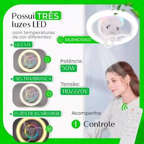 Elegância e Funcionalidade: Ventilador de Teto 50W com Luz RGB e Controle Remoto Ventilador de Teto com Luz RGB e Rotação de 360 Graus - Modernidade e Conforto em um Único Produto