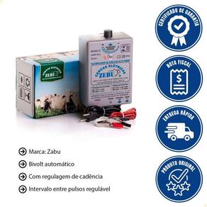 A regulagem de cadência permite ajustar o intervalo entre os pulsos elétricos, variando de 1,02 a 1,9 segundos, conforme a necessidade da sua aplicação. Modelo: LB35 | Peso Líquido: 0.8500 | ProdutoAltura-cm: 0 | ProdutoLargura-cm: 0 | EmbalagemLargura-cm: 13 | Cubagem: 0.003250 | Dias Entrega Fornecedor: 1 | Marca: Zebu | EmbalagemComprimento-cm: 10 | Largura Produto: 0 | EmbalagemAltura-cm: 25 | Altura Produto: 0