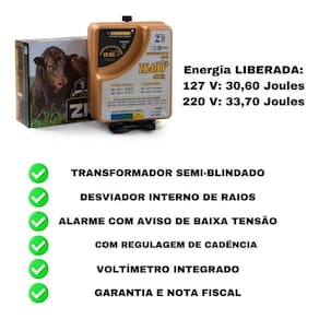 - Intervalo entre pulsos regulável: 1,1 a 2 segundos