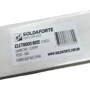 ESPECIFICAÇÕES TÉCNICAS: :: Marca: SOLDAFORTE :: Modelo: 6013 - 3,25MM HEBEI :: Corrente A : 50 - 70 :: Polaridade: CC + ou CA