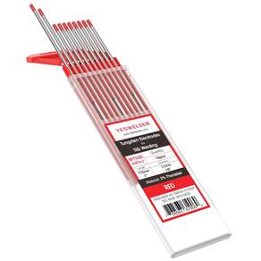 Eletrodo de tungstênio de soldagem TIG 2% Thoriated 1/8" x 7" (vermelho, EWTh-2) pacote com 10 YESWELDER - VERMELHO-2% TORIADO: O eletrodo Thoriated é um eletrodo de soldagem tradicional excepcional, cujo arco é contínuo, estável, sem se espalhar e dispersar. Como não é fácil obter um topo redondo com termoestabilidade, ele tem um bom desempenho em uma vida inteira. - Certificação AWS: norma AMERICAN Welding Society AWS A5.12M/A5.12:2009. - DESIGN PERFEITO: Ao verificar a cor da embalagem externa, você pode distinguir rápida e facilmente a cor e o modelo dos eletrodos de tungstênio, economizando seu tempo e reduzindo a possibilidade de erros. - EMBALAGEM PROFISSIONAL: Embalagem a vácuo, sem oxidação, alcançando preservação por muito tempo. - Especificações: Diâmetro: 1/20.3 cm; Comprimento: 18 cm; Quantidade: 10 unidades.
