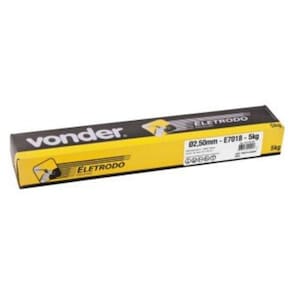 Conteúdo da Embalagem: 5,0 kg de eletrodo Indicado para soldagens em geral de maior responsabilidade, depositando metal de alta qualidade. Utilizado em reparos navais, estruturas metálicas, vasos de pressão, plataformas e aços de composição desconhecida. Os eletrodos, de um modo geral, não devem ficar armazenados diretamente no chão ou expostos à umidade. Para um mínimo de conservação, devem ser armazenados em cima de madeiras ou em prateleiras. No momento do uso, é muito importante a utilização de estufas cochicho . Possui alto rendimento na deposição e ótima resistência mecânica Certificados: IS.5033.11000005509.19 Certificado de conformidade com a norma AWS/ASME SFA 5.1 E7018. Diâmetro do eletrodo:2,50 mm Atende norma: AWS/ASME SFA 5.1 - E7018 Posições de soldagem:Plana, horizontal, vertical ascendente, sobre-cabeça e angular Faixa de corrente do eletrodo: 65 A - 105 A Tipo de corrente do eletrodo: CA 70 V/ CC+ Tensão do eletrodo:20 V a 30 V Tipo de revestimento do eletrodo:Básico Quantidade de varetas aproximada do eletrodo:49 Varetas por kg Garantia - E CDC :Garantia legal: 90 dias Ean: 7893946244057