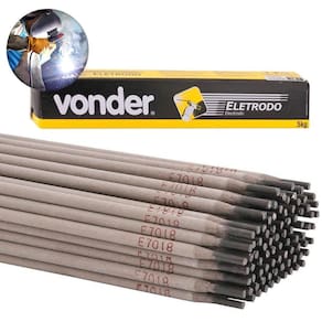 DESCRIÇÃOIndicado para soldagens em geral de maior responsabilidade, depositando metal de alta qualidade. Utilizado em reparos navais, estruturas metálicas, vasos de pressão, plataformas e aços de composição desconhecida. Os eletrodos, de um modo geral, não devem ficar armazenados diretamente no chão ou expostos à umidade. Para um mínimo de conservação, devem ser armazenados em cima de madeiras ou em prateleiras. No momento do uso, é muito importante a utilização de estufas cochicho .Possui alto rendimento na deposição e ótima resistência mecânica. Produto possui certificado de conformidade emitido pelo SGS. ESPECIFICAÇÃO- Diâmetro do eletrodo: 3,25 mm- Comprimento do eletrodo: 350 mm- Tipo de revestimento do eletrodo: Básico- Atende norma: AWS/ASME SFA 5.1 - E7018- Classificação: E7018- Faixa de corrente do eletrodo: 110 A - 150 A- Tipo de corrente do eletrodo: CA 70 V / CC+- Tensão do eletrodo: 20 V a 30 V- Posições de soldagem: Plana, horizontal, vertical ascendente, sobre-cabeça e angular- Garantia legal: 90 dias CONTEÚDO DA EMBALAGEM- 5 kg de eletrodo.