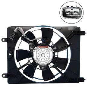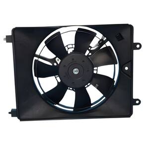 Eletroventilador com defletor Sem resistência Conector de 2 pinos Hélice de 7 pás c/278mm Lado do condensador Motor c/102mm Voltagem de 12v Sentido horário