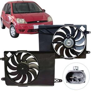 Eletroventilador com defletor Sem resistência Conector de 2 pinos Hélice de 11 pás c/347mm Voltagem de 12v C/ ar condicionado Sentido horário