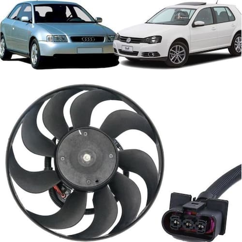 Informamos que a vw/audi fabricaram modelos de eletroventiladores diferenciados para os mesmos veículos, pedimos atenção no ato da compra. Este modelo por exemplo é de motor fino e alto, como nas fotos. Aplicação: Vw Golf 1999 a 2012 Bora após 2002 Audi A3 1999 a 2006 Modelo menor motor alto Ventoinha com 9 pás, se atente a quantidade de pás da sua por favor Ventoinha do ar condicionado Diâmetro do motor 100mm Diâmetro da hélice 290mm Códigos de referência: 1j0959455c, 1j0959455 k, 1j0959455l, 1j0959455m, 6q0959455l, 6q0959455p, 6qd959455c Dúvidas frequentes 1. Os produtos são novos Todos os produtos são produtos novos e com de 3 meses. 3. O produto acompanha 4. Qual horário de atendimento O horário de atendimento é das 08:00 às 17:30 hrs. 5. Como são realizadas as entregas 6. Ainda tem dúvidas Utilize o campo de perguntas em caso de dúvidas e somente clique em comprar após a plena certeza em honrar a compra e concordar com as condições descritas acima. Importante A mercadoria é despachada em até 48 horas após aprovação da compra. Não nos responsabilizamos por instalação mal realizada; a instalação deve ser feita por um profissional especializado. De um novo visual para o seu carro, aqui você encontra os melhores produtos com os melhores preços