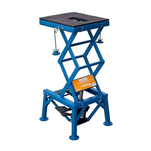 Elevador hidráulico para motocross Bovenau Capacidade : 130 Kg Dimensão da base : 430 x 485 mm Altura mínima : 360 mm Altura de elevação : 900 mm Comprimento : 350 mm Largura : 410 mm Peso : 31 Kg Ideal para reparos em motocross Sistema pantográfico dando agilidade e rapidez na elevação da moto