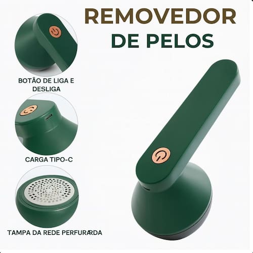 Remove fiapos, bolinhas e pelos de roupas e tecidos. Bateria interna recarregável via USB. Lâminas de aço afiadas com grade protetora. Design ergonômico. Portátil e leve.Tipo