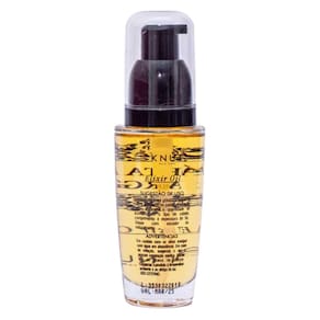 ========================================================================================= Elixir Capilar Knut Cártamo e Argan 35ml Óleo capilar para todo o tipo de cabelo. Knut elixir Oil Cartamo & Argan é para cabelos sedosos, macios e brilhantes instantaneamente. Knut Elixir Oil Cartamo Argan ajuda a recuperar cabelos danificados, melhorando seu aspecto com uma só aplicação. Tem toque seco, ajuda na acentuar cachos e a eliminar o frizz, deixa maleável e sedoso. Conselho de Aplicação O Elixir de Knut tem uma aplicação multiuso: Como pré-tratamento: coloque de 5 a 10 gotas na palma das mãos, esfregue-as e aplique no cabelo massageando o elixir no comprimento dos fios. Deixe agir de 0 a 20 minutos antes de lavá-los com sua linha KNUT favorita e sinta maior maciez. Como leave-in e protetor térmico: coloque de 2 a 5 gotas na palma das mãos, esfregue-as e aplique no cabelo úmido antes da escova. Como finalizador e reparador de pontas: coloque de 2 a 5 gotas na palma das mãos, esfregue-as e aplique nas pontas dos fios, após escova, chapinha ou a qualquer momento nos cabelos secos naturalmente para controle do frizz e brilho, finalizando seu estilo. Como pré-tratamento químico ou coloração: coloque de 5 a 10 gotas na palma das mãos, esfregue-as e aplique no cabelo com massagem suave antes dos procedimentos de química ou coloração, sem enxaguar antes. Como hidratação extra: coloque até 5 do elixir na sua máscara de tratamento preferida e use como de costume, respeitando o tempo de aplicação da máscara. ========================================================================================= Anúncio composto por:
