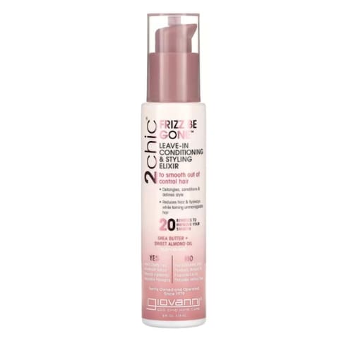 Cuidado hidratante para o cabelo — O elixir condicionador e modelador GIOVANNI 2chic Frizz Be Gone melhora a elasticidade do cabelo, seda os cabelos e define o estilo. Reduz o frizz enquanto deixa seu cabelo macio