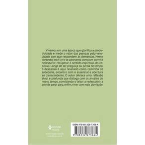 Vivemos em uma época que glorifica a produtividade e mede o valor das pessoas pela velocidade com que respondem às demandas. Nesse contexto, este livro se apresenta como um convite necessário: recuperar o sentido espiritual do repouso. Longe de ser preguiça ou perda de tempo, o descanso é aqui revelado como caminho de sabedoria, encontro com o essencial e abertura ao transcendente. O autor oferece uma reflexão atual e profunda que dialoga com os anseios do nosso tempo, convidando o leitor a redescobrir a arte de parar para, enfim, viver com mais plenitude.