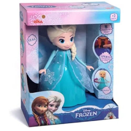 Elsa - Frozen Elsa vive no reino de Arendelle Elsa tem poderes mágicos que transformam gelo em magia e Anna está sempre junto de sua irmã para ajudá-la. Imagine brincar com Elsa Apertando sua barriguinha, a boneca fala 8 frases iguais ao do filme, Bolinha no vestido para a boneca deslizar ou girar Altura 24 cm Fabricante Elka Plásticos Ltda Alimentação 3 baterias LR 41 Material/ Composição Plástico e vinil Idade Recomendada + 2 anos CE-BRI/IQB-2276 - NM 300/2002 - OCP 0006 Ean: 6012545577569