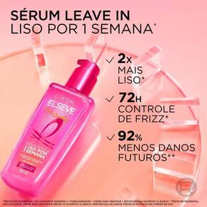 Elseve Liso dos Sonhos Sérum Capilar 100ml O Sérum Capilar Liso dos Sonhos da Elseve proporciona brilho e controle para cabelos lisos, promovendo uma textura sedosa e macia. Sua fórmula com micro-óleo de argan ajuda a selar as cutículas, reduzindo o frizz e proporcionando um efeito liso duradouro. Ideal para quem busca cabelos alinhados e com brilho intenso, sem pesar. Controla o frizz Proporciona brilho e maciez Fórmula com micro-óleo de argan Textura leve e sedosa Matéria-prima: Micro-óleo de argan. Produto indicado para todos os tipos de cabelo, especialmente os lisos. Marca: Não Informado Ean: 7908785461555