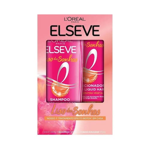 O Kit Elseve Liso dos Sonhos é uma combinação de shampoo e condicionador desenvolvida para proporcionar cabelos lisos, alinhados e com frizz controlado. Indicação: Ideal para cabelos lisos naturais, alisados ou com frizz. Benefícios: Limpeza profunda e fortalecimento da fibra capilar. Alinhamento duradouro dos fios. Redução do frizz e proteção contra umidade. Brilho intenso e movimento natural. Composição: Queratina Vegetal: Restaura e fortalece a fibra capilar. AHA Alfa-Hidroxiácidos : Suaviza a fibra capilar, promovendo alinhamento. Óleo de Rícino: Nutre e hidrata os fios. Modo de Uso: Aplique o shampoo nos cabelos molhados, massageando suavemente até formar espuma. Enxágue e repita se necessário. Aplique o condicionador no comprimento e pontas, deixando agir por alguns minutos. Enxágue completamente. Precauções: Uso externo. Evite contato com os olhos; em caso de contato, enxágue abundantemente com água. Mantenha fora do alcance de crianças. Em caso de irritação, suspenda o uso e procure orientação médica. Este kit oferece um tratamento eficaz para quem busca cabelos lisos, saudáveis e com brilho intenso. Marca: Não Informado Ean: 7908785476825