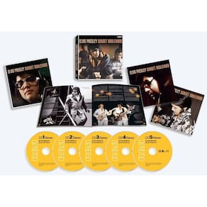 ‘Sunset Boulevard’ é uma coleção completa de 5 CDs que destaca as sessões de gravação e ensaios de Elvis no histórico Sunset Boulevard Studio da RCA. Abrangendo o período de 1970 a 1975, apresenta Elvis gravando pela primeira vez com sua lendária banda em turnê, gerando os sucessos ‘Burning Love’, ‘Always On My Mind’ (1972) e ‘T-R-O-U-B-L-E’ (1975) do álbum ‘TODAY’. Esta edição especial também inclui 3 discos de ensaios de 1970 e 1974 que capturam momentos sérios e descontraídos de Elvis no estúdio. ‘Sunset Boulevard’ apresenta 89 faixas, 34 das quais são versões recém-mixadas, puras e sem overdubs.
