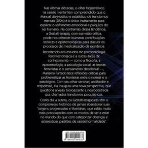 Nas últimas décadas, o olhar hegemônico na saúde mental tem compreendido que o Manual diagnóstico e estatístico de transtornos mentais (DSM) é o único instrumento para explicar o sofrimento emocional e psíquico do ser humano. Na contramão dessa tendência, a Gestalt-terapia, com sua visão crítica, pode nos oferecer inúmeras contribuições teóricas e epistemológicas para discutir os processos de medicalização da existência. Recorrendo aos estudos de psicopatologia fenomenológica e a outras áreas de conhecimento — como a filosofia, a epistemologia, a psicologia social, as teorias feministas e o pensamento decolonial —, Mariama Furtado tece reflexões críticas para problematizar as fronteiras entre o normal e o patológico. Com seu olhar sensível, acolhedor e respeitoso, ela inaugura uma nova perspectiva, que questiona a visão biologizante e neurocentrada dos chamados transtornos psiquiátricos. Como diz a autora, os Gestalt-terapeutas têm o compromisso histórico de jamais abandonar suas “origens progressistas e libertárias, que estão muito mais preocupadas com os modos de ser e estar no mundo do que com categorizar doenças e estereotipar padrões de saúde/normalidade”. Prefácio de Lilian Frazão.