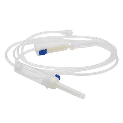 ? Regulador de fluxo: (Em Acrilonitrila butadieno estireno - ABS) é uma peça independente que fica sobreposta ao tubo flexível sendo utilizado para o ajuste do fluxo do fluído entre zero e o máximo, permitindo o uso contínuo durante a infusão sem danificar ou deteriorar o tubo. Possui alta precisão que facilita o manuseio e permite um rigoroso controle do gotejamento.