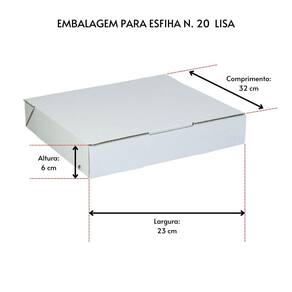 Embalagem para esfihas e salgados, fabricada com papelão ondulado com uma face na cor branca outra na cor parda (marrom). Impressão padrão em duas cores. Uma embalagem que se diferencia pelo baixo custo e praticidade. É a caixa muito usada pelas padarias, lojas de salgados, doceiras, salgadeiras.