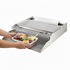O aplicador de filme é indicado para embalagens de bandejas com frutas, legumes, frios, carnes, farináceos, etc., utilizando filme de PVC esticável e bandejas de isopor ou similar. Projetada e desenvolvida de acordo com as normas de segurança, possui sua estrutura em aço inox.