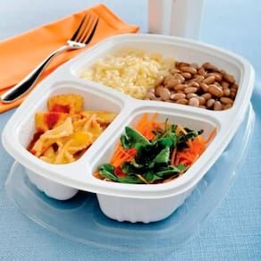 Perfeita para quem busca praticidade e segurança no armazenamento e transporte de alimentos, a Embalagem com 3 Divisórias Galvanotek G330 é ideal para refeições completas. Fabricada em material resistente, pode ser utilizada tanto no micro-ondas quanto no freezer, oferecendo alta durabilidade e conservação dos alimentos. Com capacidade total de 1150 ml e três compartimentos, permite separar os alimentos de forma prática, mantendo sabor e textura. Disponível na cor branca, o pacote contém 100 unidades, sendo uma excelente opção para restaurantes, marmitarias, delivery e serviços de alimentação.