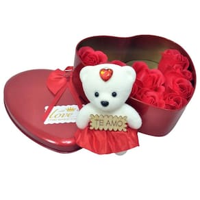 Embalagem Coração Em Lata Com Urso Pelúcia E Rosas Vermelhas Surpreenda alguém especial com o coração com Ursinho e Rosas Presenteie quem você ama com olindo mimo que transborda carinho Complete com bombons, jóias ou outros mimos . Embalagem formato de coração em metal Medidas coração : 16 x 14 x 5cm Altura Ursinho com plaquinha TE AMO Medidas Ursinho : 10 cm Altura Com diversas pétalas artificiais de Rosas Vermelhas 9 Com perfume agradável Pode ser para armazenar itens pessoais Embalagem com belo laço e etiqueta Love. Marca: Sci Ean: 7795855285667
