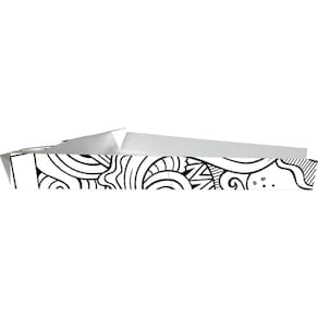 Produzida em cartão duplex Klabin, a caixinha possui o modelo branco e preto, que acrescenta um toque de elegância e sofisticação ao seu produto. Suas dimensões de 2cm x 17cm x 18cm AxLxC permitem que a fatia de pizza seja acomodada de forma adequada, evitando que ela se mova durante o transporte.