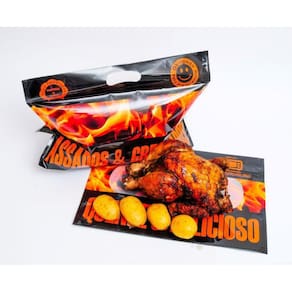 Novo modelo para embalagem para térmica frango assado e grelhados Com Ziper, não vaza Com alça para melhor transporte Para frango assado e grelhados Pode ir ao micro-ondas Medida : 34 cm x 24 cm x 14 cm com base preta, higiênico, o alimento permanece quente por até 2 horas, sacola reutilizável com muitas vantagens, prático, atrativo e estiloso. Material: PET-PP Suporta um frango assado inteiro ou cortado de até 3 kg e todo tipo de grelhados. Acabe com embalagens fraca, valorize o seu negócio com uma embalagem moderna, prática e rápida para embalar. Marca: Zipembalagens Ean: 0092757306832
