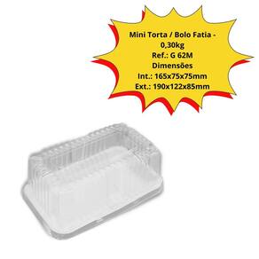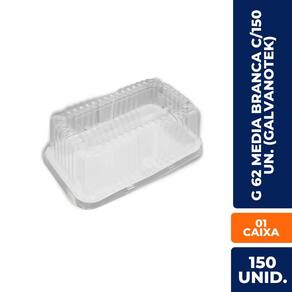 ESPECIFICAÇÕES TÉCNICAS: Produto: Embalagem plástica média Modelo: G 62 Marca: Galvanotek Cor: Branca Material: Polipropileno (PP) Formato: Retangular arredondado Dimensões aproximadas: Comprimento: 19,7 cm Largura: 14,5 cm Altura: 4,7 cm Capacidade: Média (ideal para porções, doces, salgados, bolos) Tampa: Vendida separadamente (caso não esteja inclusa no kit) Quantidade no kit: 150 unidades Uso indicado: Delivery, confeitarias, eventos, marmitas Empilhável: Sim Validade: Indeterminada Aprovada para contato com alimentos: Sim Marca: Não Informado