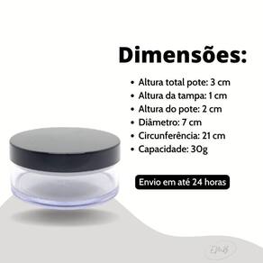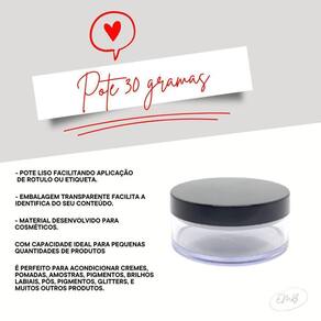 O pote possui uma capacidade de 30g, garantindo espaço suficiente para acomodar seus cosméticos.