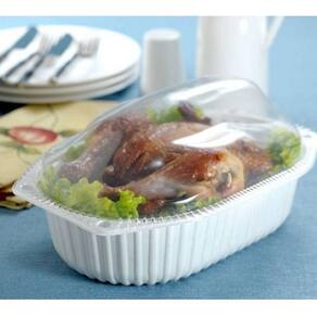 A Embalagem Galvanotek G100 com tampa é ideal para armazenar frango assado. O produto conta com travas em sua borda, que asseguram uma melhor vedação, mais segurança e praticidade no transporte, além de deixar o produto muito bem embalado e com uma aparência incrível, conta com a qualidade inquestionável Galvanotek, que é líder no seguimento.