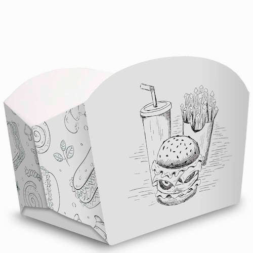 Caixinha Embalagem para Batata-frita, Hamburguer, Salgados e Porções Modelo Branco e Preto 1000 unidades A Embalagem para Batata-frita, Hamburguer, Salgados e Porções faz parte da nossa linha exclusiva de produtos, ideal para consumo imediato. Descrição do Produto: Modelo: branco e preto Material: cartão triplex Dimensões: 8cm x 7cm x 10 na base cm AxLxC Itens inclusos: 1000 unidades Super prática ;- Ideal para usar no delivery, food-truck, lanchonete ou evento, nossa Caixinha para Batata-frita e Porções é muito importante para o sucesso do seu produto no mercado. A importância da embalagem está em sua função, uma vez, que ela é o principal meio de fazer a conexão entre o produto e o seu cliente. Quem nunca comprou um produto apenas pela embalagem, não é mesmo Além de ser bonita, nossa Caixinha para Fritas e Salgados possui atributos que serão perceptíveis ao seu cliente, como a praticidade, a conveniência e a facilidade de consumo do seu produto. Também traz segurança, higiene e conforto para o seu cliente, além de demonstrar proteção ao seu produto. Marca: Pdv Print