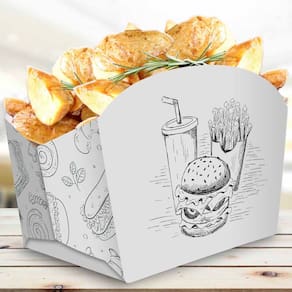 Caixinha Embalagem para Batata-frita, Hamburguer, Salgados e Porções Modelo Branco e Preto 500 unidades A Embalagem para Batata-frita, Hamburguer, Salgados e Porções faz parte da nossa linha exclusiva de produtos, ideal para consumo imediato. Descrição do Produto: Modelo: branco e preto Material: cartão triplex Dimensões: 8cm x 7cm x 10 na base cm AxLxC Itens inclusos: 500 unidades Super prática ;- Ideal para usar no delivery, food-truck, lanchonete ou evento, nossa Caixinha para Batata-frita e Porções é muito importante para o sucesso do seu produto no mercado. A importância da embalagem está em sua função, uma vez, que ela é o principal meio de fazer a conexão entre o produto e o seu cliente. Quem nunca comprou um produto apenas pela embalagem, não é mesmo Além de ser bonita, nossa Caixinha para Fritas e Salgados possui atributos que serão perceptíveis ao seu cliente, como a praticidade, a conveniência e a facilidade de consumo do seu produto. Também traz segurança, higiene e conforto para o seu cliente, além de demonstrar proteção ao seu produto. Marca: Pdv Print