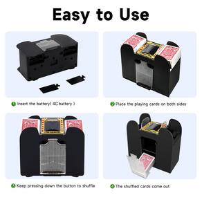 ?Ótima opção para jogos de cartas?Feito com o material ABS mais resistente, o embaralhador automático de cartas Unniweei com alta velocidade de embaralhamento é perfeito para jogos de cartas de cassino, jogos de cartas caseiros, UNO, Phase10, Texas Hold'em, Blackjack e Home Party Club Game. O embaralhador de cartas pode embaralhar as cartas de baralho de forma rápida e suave e coletá-las na bandeja. Depois de inserir os cartões nas aberturas dos dois lados do produto, eles serão embaralhados automaticamente com um único toque no botão.