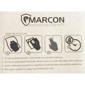 Instruções para aplicação: 1 - limpe cuidadosamente a área onde será aplicado o adesivo. 2 - remova a película protetora do adesivo, evite o contato das mãos com o adesivo. 3 - após a aplicação pressione a superfície do adesivo para uma perfeita aderência. 4 - não expor o adesivo a agua nas próxima 24 horas.