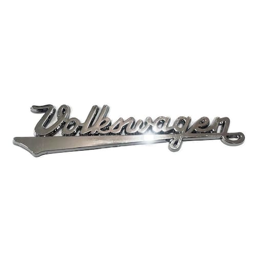 Emblema Logo escrita porta mala Fusca e Kombi antigo Emblema Volkswagen Manuscrito Cromado Linha Volkswagen. Emblema com adesivo dupla face 3M de fácil aplicação. Fabricado em ABS cromado de ótimo acabamento. Valor referente a unidade do emblema. Tamanho 17 cm x 4,4 cm.