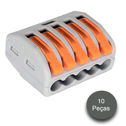 Conector com trava alavanca 5 portas 10 peças