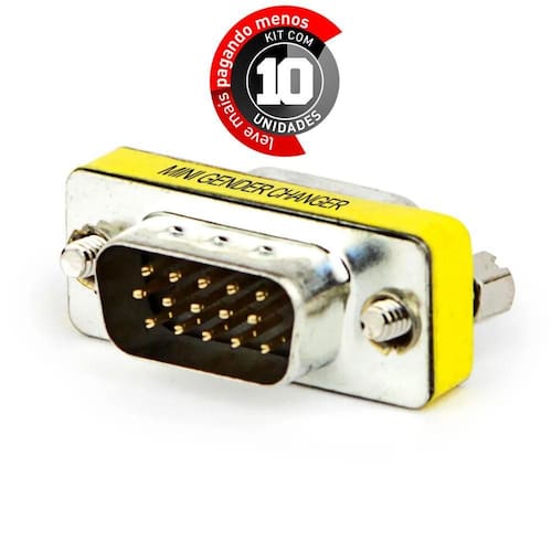 Emenda Vga Macho - Kit Com 10 Transforme o seu cabo VGA Fêmea em uma entrada VGA Macho utilizando Emenda VGA Macho. Super fácil de instalar, basta conectar uma das pontas na emenda e pronto, você não precisa comprar outro cabo.