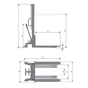 Conteúdo da embalagem: 1 Empilhadeira Manual 1,0T 690X1150mm Altura 1,6M EMP1016 Bovenau