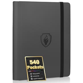 Fichário premium com 9 bolsos para 540 cartões, fichário Fabmaker com capa de PU, álbum de coleção de cartões resistente, pastas elegantes para YuGiOh, MTG, TCG, cartões de jogo e cartões esportivos, cinza - Larger Capacity & Archival Safe: Built in 30 acid-free pages to hold 540 cards, this 9 card binder makes your cards tucked away safely and keeps them in mint condition. The pages are sturdy to withstand tears and scratches and ultra clear for display. - Superior Protection: Features padded, ultra rigid exterior case to prevent bending and spills, and elastic strap to keep your cards from falling out. This water-resistant card binder offers maximum security and trusted durability for your trading cards. - Side Loading Padded Sheets: Side loading pockets make inserting your cards easier, yet help reduce card spills. All pages are padded and built to resist warping, as great backdrops to display cards. The middle section is specially widen to avoid bending the cards on the first column. - Perfect Fit for Variety Collectible Cards: Size: 2.7" x 3.7". Card Album Size: 12.8" x 10.2" x 1.5". Well designed to fit sleeved cards for double protection. Compatible with multiple standard cards, perfect for MTG cards, yugioh cards, TCG cards, sports cards, cards from board games, and more. - Sleek Design & Bright Colors: Sleek design with an embossed logo on the front cover for added style point. With ultra padded PU cover, the binder is also comfortable to touch. Offer 12 different stylish colors to match your tastes. You can also color code the specific card types to keep them separate but easy to find.
