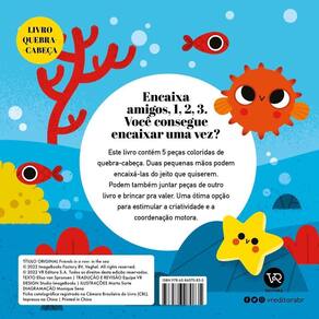 Encaixa amigos, 1, 2, 3. Você consegue encaixar uma vez? Este livro contém 5 peças coloridas de quebra-cabeça. Duas pequenas mãos podem encaixá-las do jeito que quiserem. Podem também juntar peças de outro livro e brincar pra valer. Uma ótima opção para estimular a criatividade e a coordenação motora.