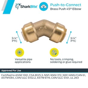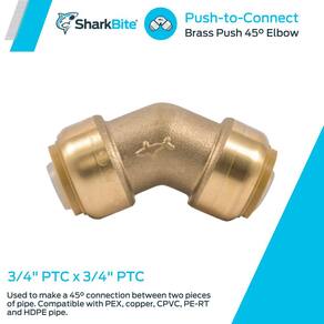 Cotovelo SharkBite de 3/4 polegadas e 45 graus, encaixe de encanamento de latão para conectar, tubo PEX, cobre, CPVC, PE-RT, HDPE, U656LFA