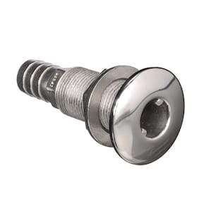 Attwood 66547-3 Encaixe de válvula reta através do casco de aço inoxidável, farpado, comprimento padrão, para mangueira de diâmetro interno de 1,9 cm