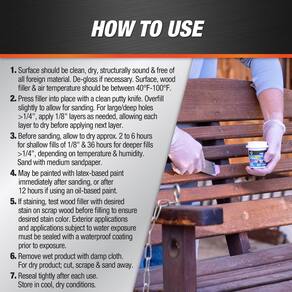 - Fórmula fácil de usar, à base de látex pode ser aplainada, cortada, perfurada, parafusada, pregada, lixada, manchada e pintada, ao contrário de muitos enchimentos de massa de madeira